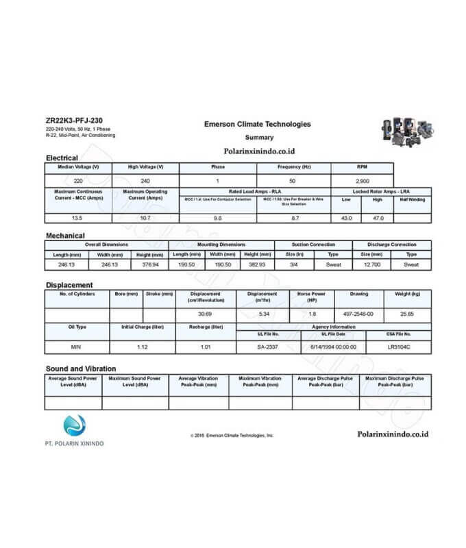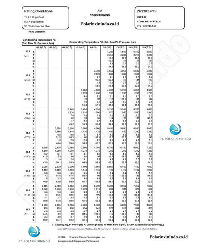 Inilah Spesifikasi & Informasi Produk Compressor Copeland ZR22K3-PFJ