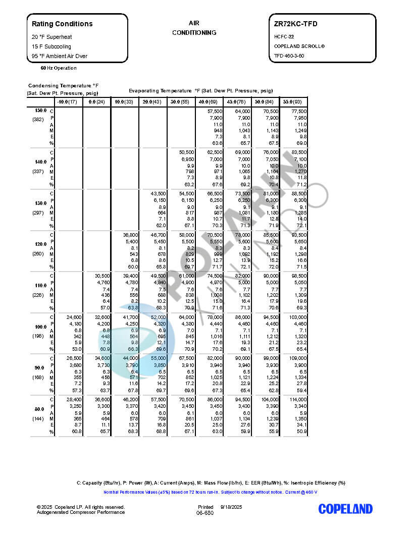 Spesifikasi Teknis Copeland ZR72KC-TFD
